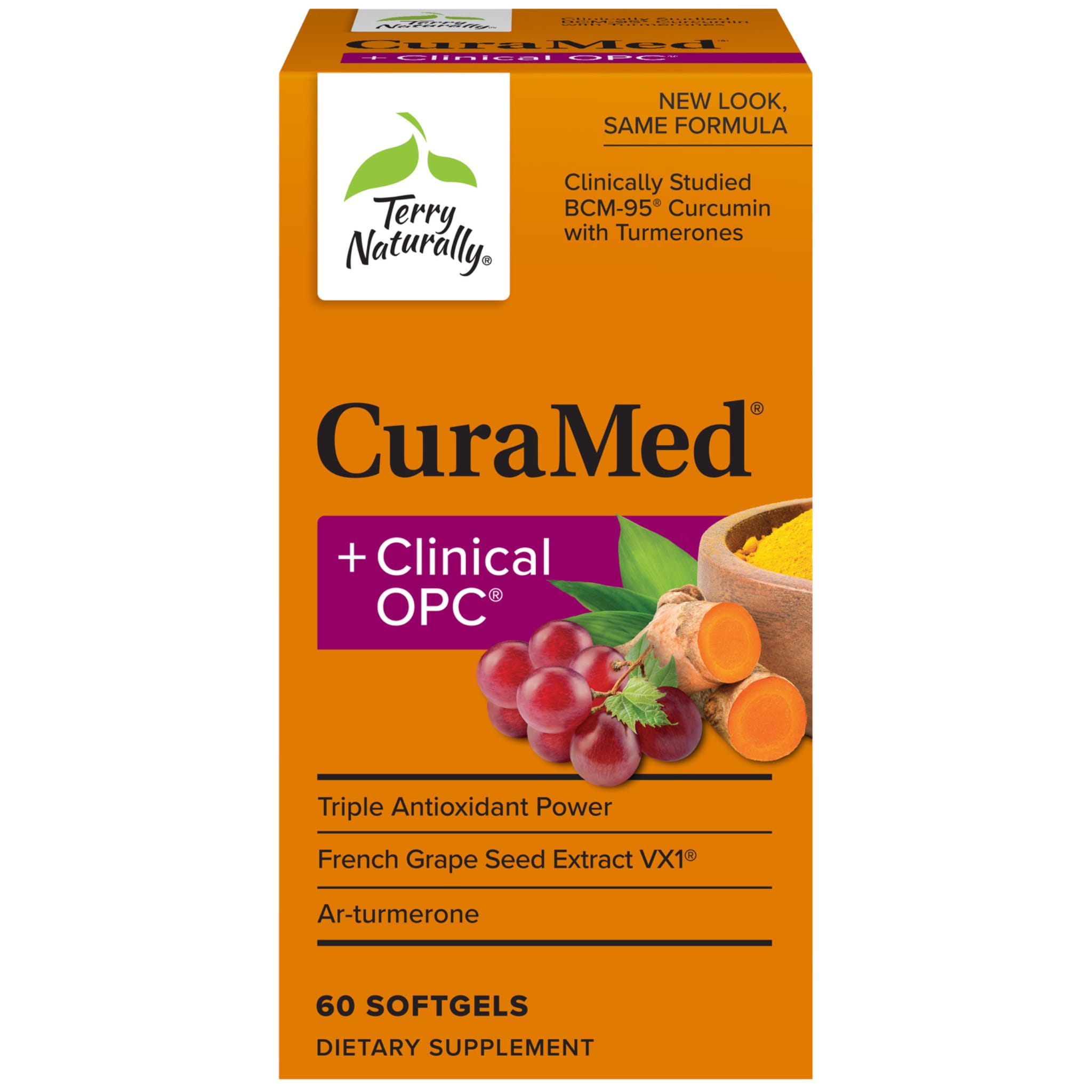 Protect Yourself Every Day CuraMed + Clinical OPC features three full-strength ingredients with proven absorption and efficacy. Together they support brain, breast, liver, heart, colon, and prostate health—and so much more. Antioxidant ORAC Value Chart Clinically Studied BCM-95® curcumin is blended with turmeric essential oil containing ar-turmerone for enhanced absorption and greater benefits. This extract from turmeric is the most clinically studied, enhanced absorption curcumin in the world. French grape seed VX1® contains absorbable OPCs—compounds with astonishing cell-protecting abilities. The extract in this formula is on the forefront of scientific research and shows health-promoting potential like no other grape seed. Turmerones from turmeric essential oil, especially ar-turmerone, deliver powerful benefits for cellular health, and work synergistically with curcumin and French grape seed extract VX1.