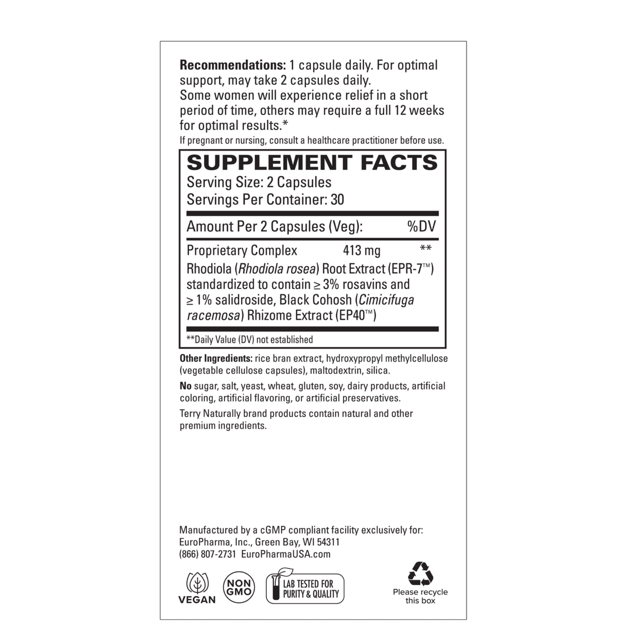 Relieves hot flashes Helps stop night sweats Reduces occasional restless sleep Reduces irritability Relieves stress Reduces fatigue Enhances libido and mood changes.