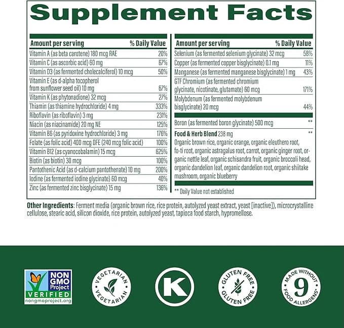 Formulated for absorption & bioavailability Immune support with Zinc & Vitamin C Supports muscles and bones with Vitamin D3 Energy metabolism support with B Vitamins 24% more total nutrients than the leading natural brand Crafted with 21 nutrients plus real food.