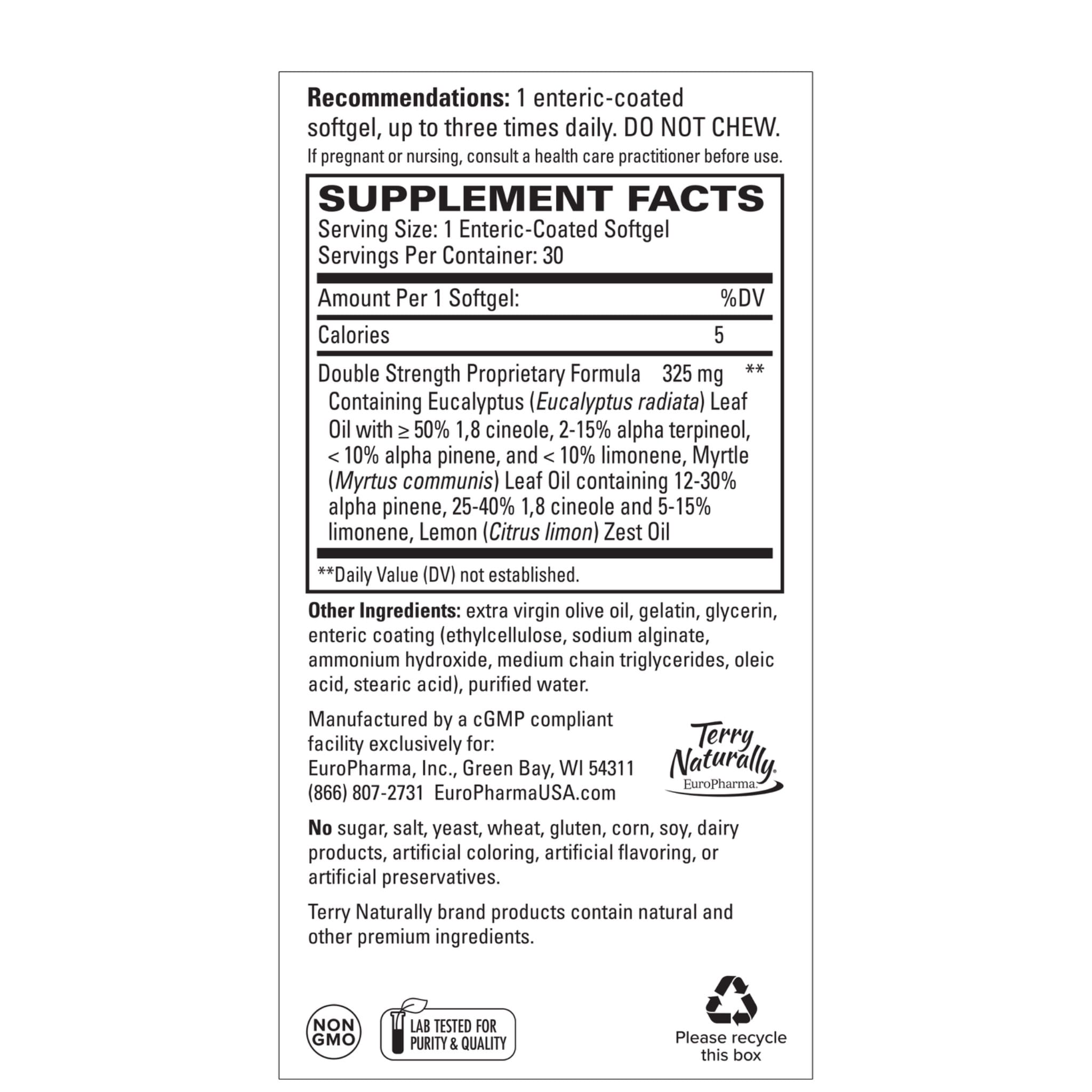 Soothes and supports sinuses, bronchial airways, and lungs* Assists in mucus removal Does not cause drowsiness, restlessness, or nasal dryness Enteric-coated softgel—no burping or aftertaste.